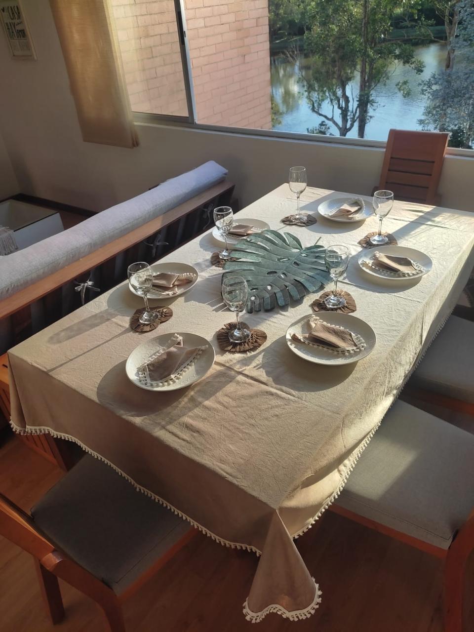 Mantel elaborado en liencillo de algodón teñido a mano en tonos a elección del cliente con borde en flecos